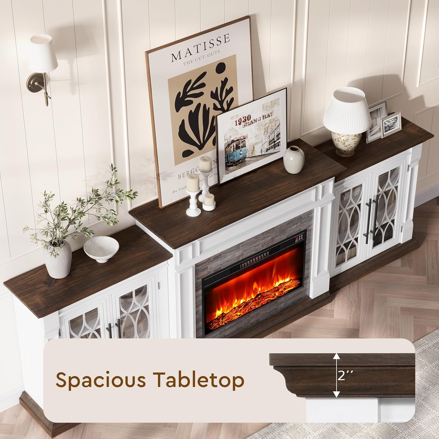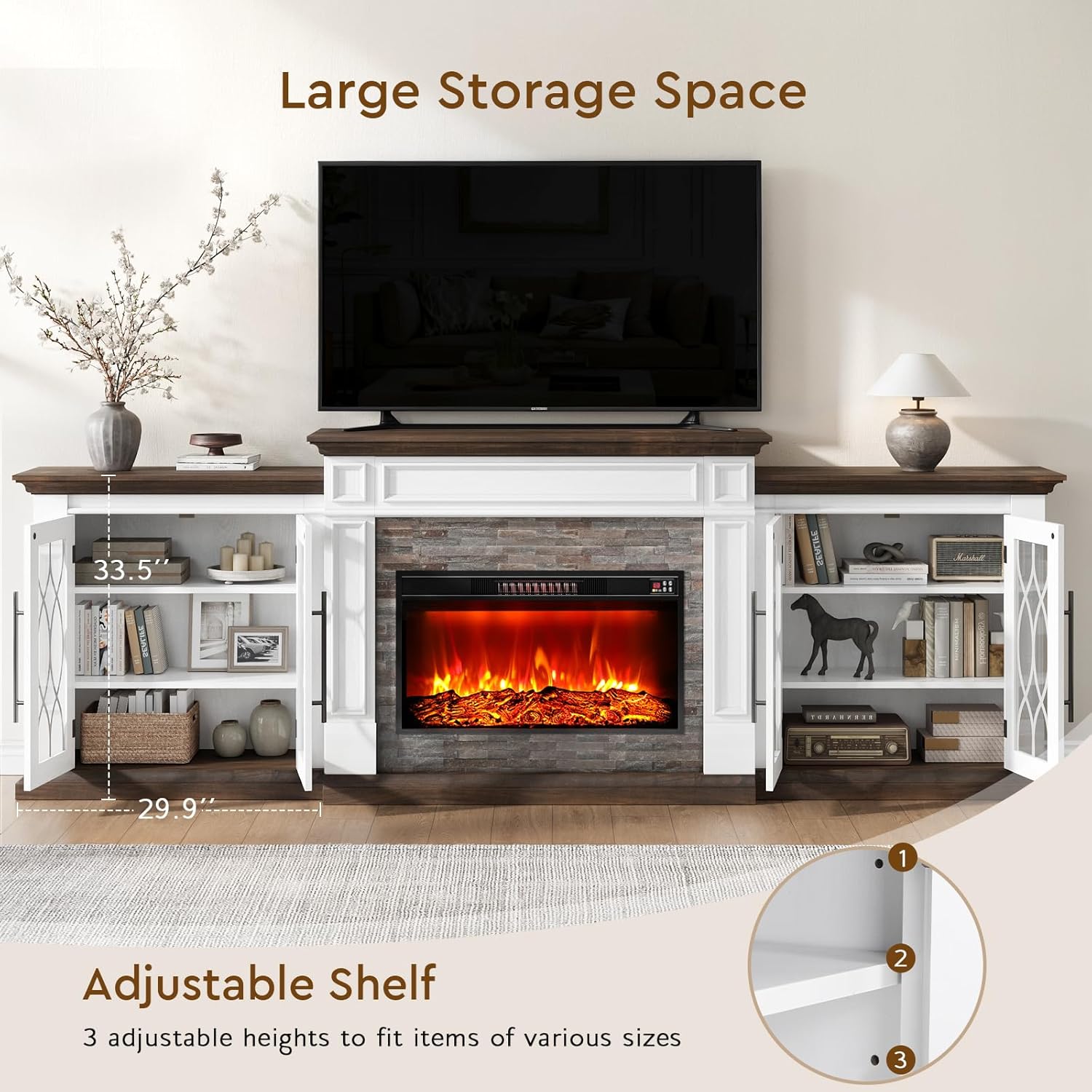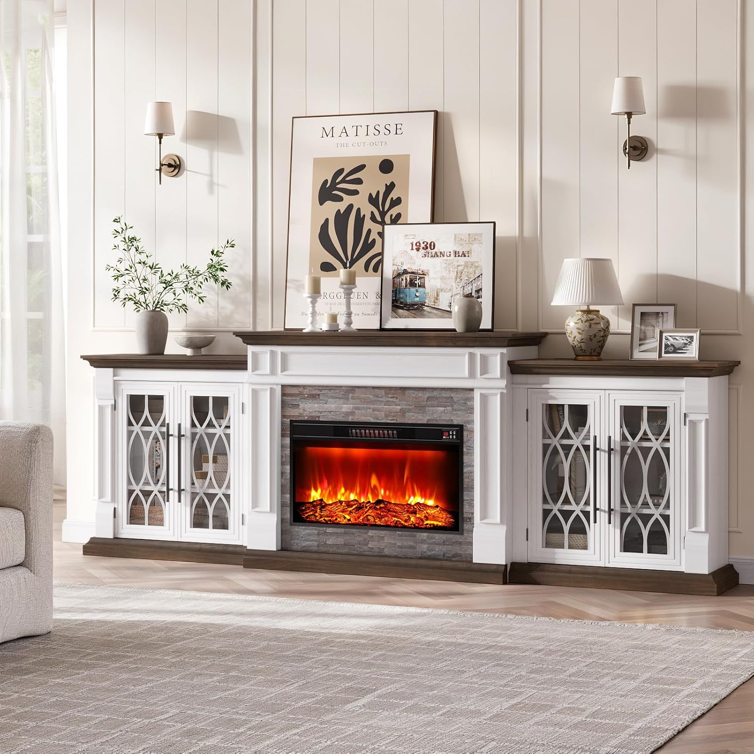 ✨【3-in-1 TV Stand with Electric Fireplace】Mix, match, and multiply your storage! This fireplace TV stand (15.7'' D x 104'' W x 37.4''H ) features a flexible modular design—Use it together as a large fireplace TV stand, or split into a storage cabinets and a fireplace mantel. It adapts to your space in the living room or anywhere you need smart, versatile storage.