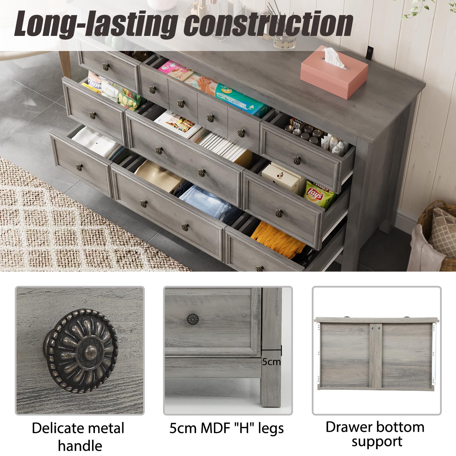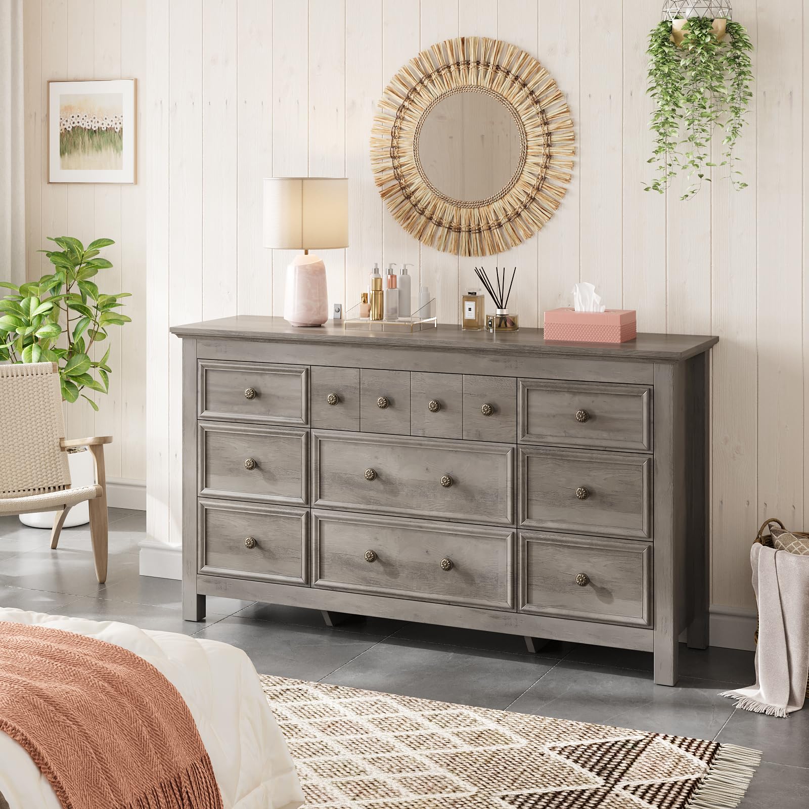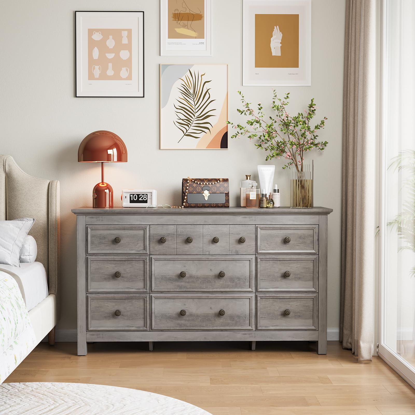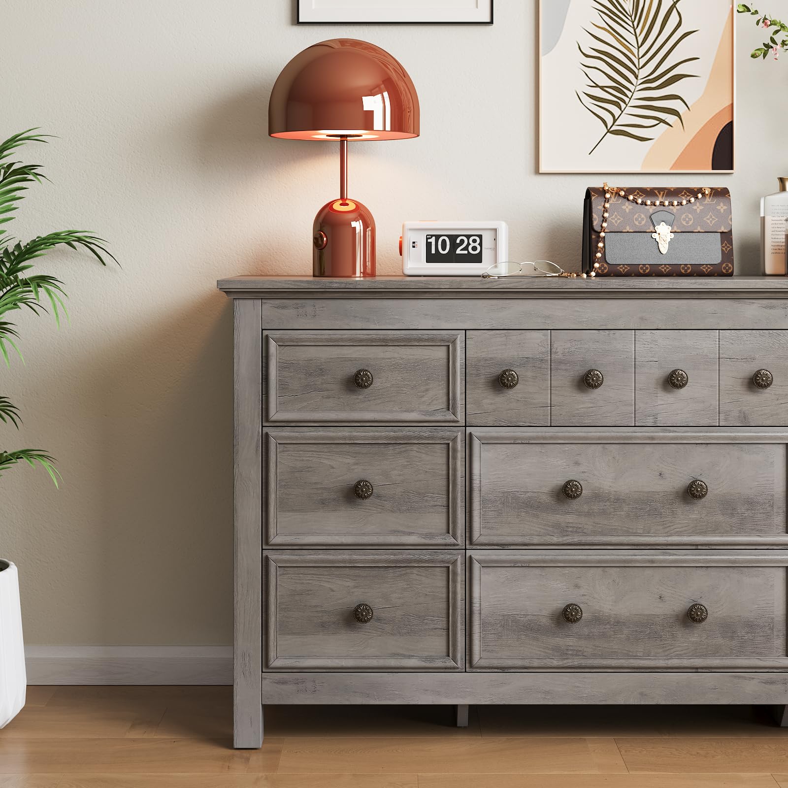 LGHM Modern 9 Drawer Dresser, Thick Dressers for Bedroom, Gray