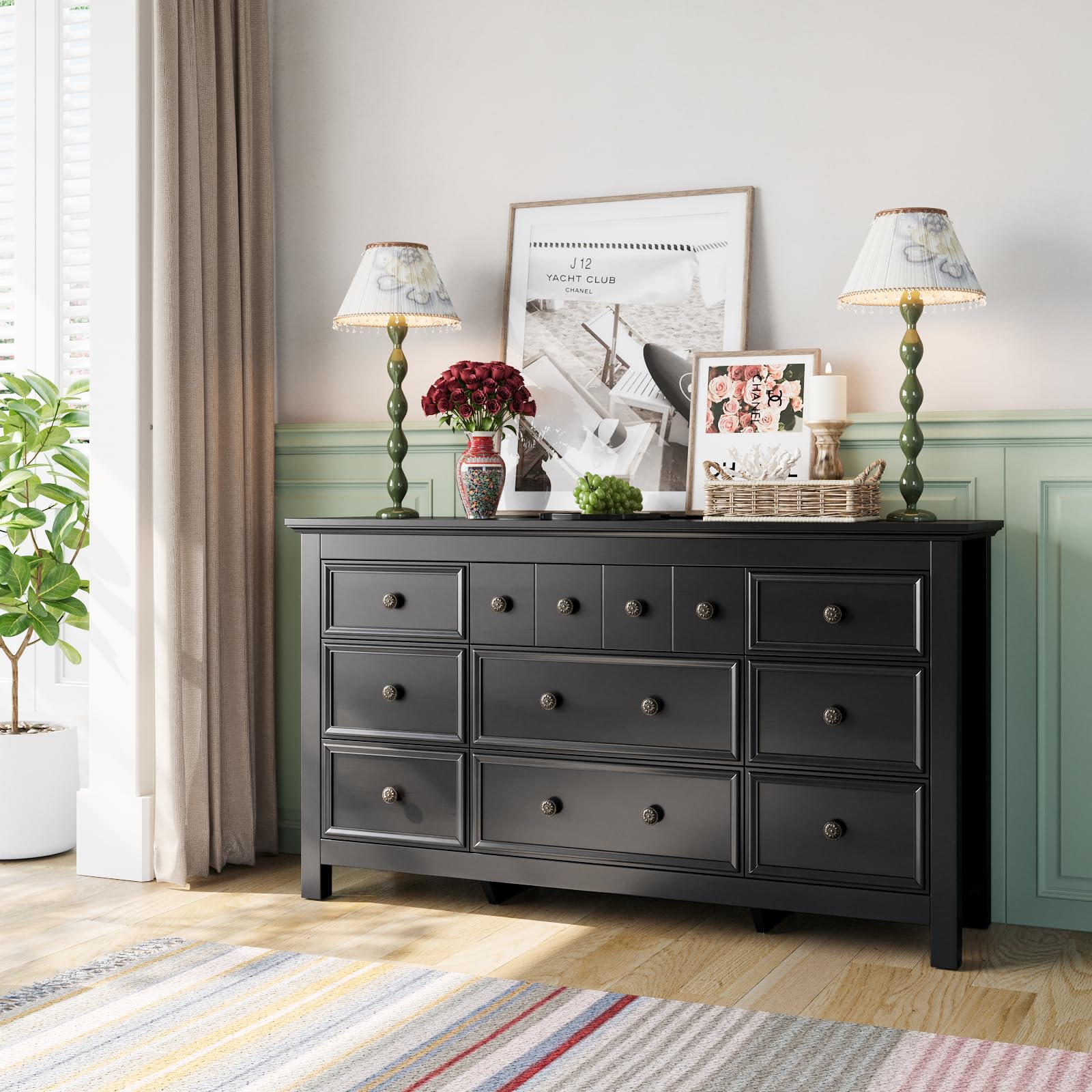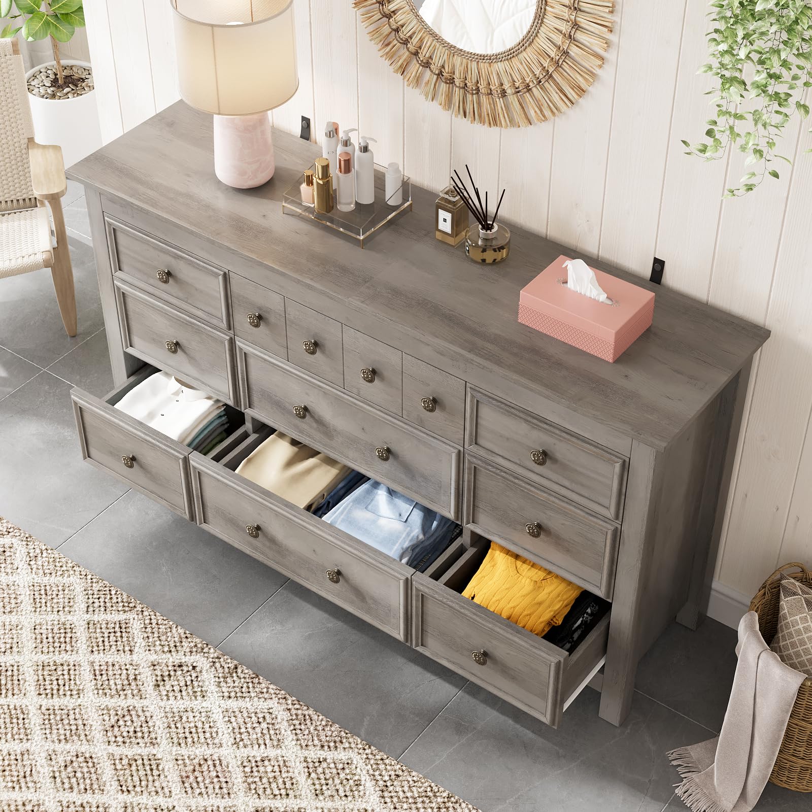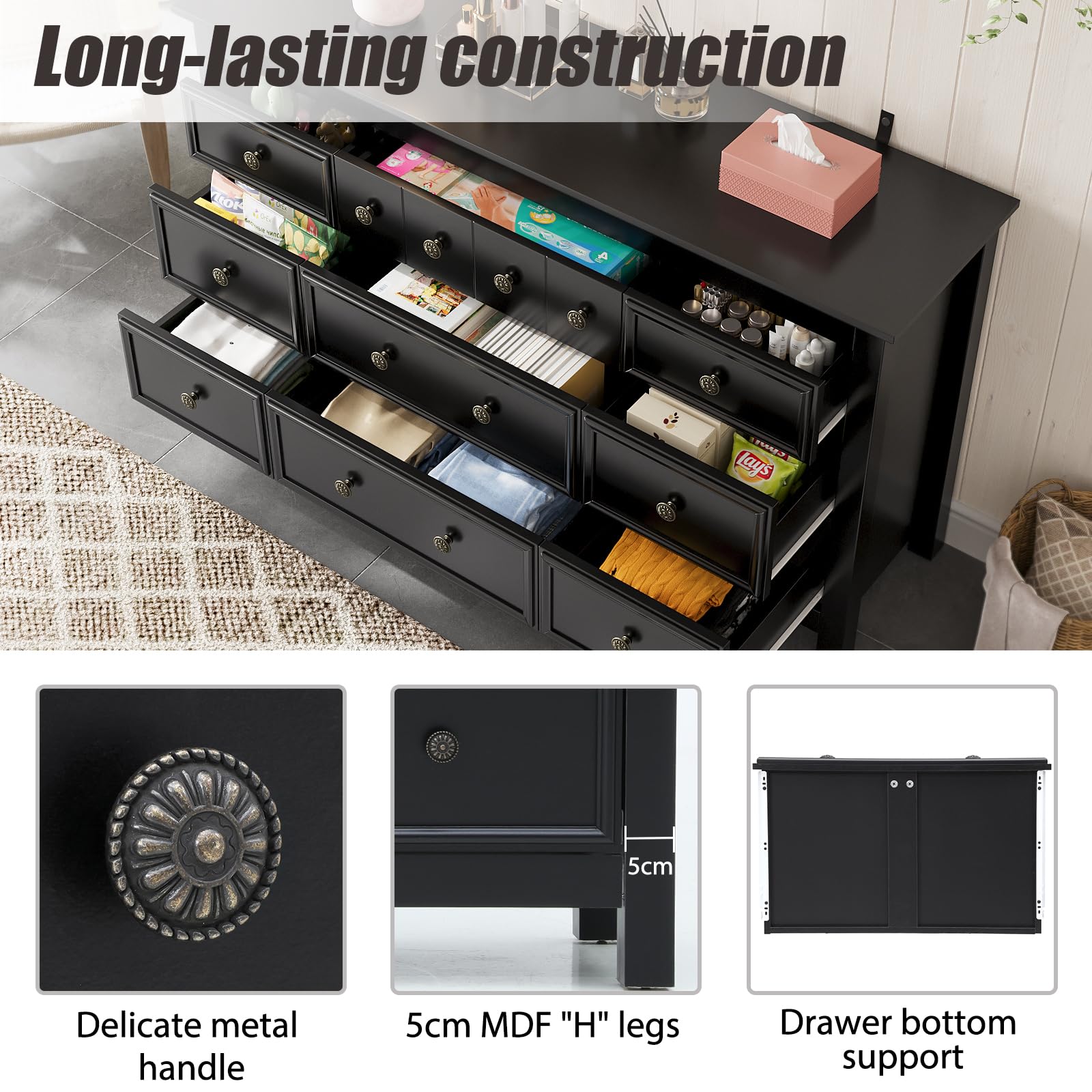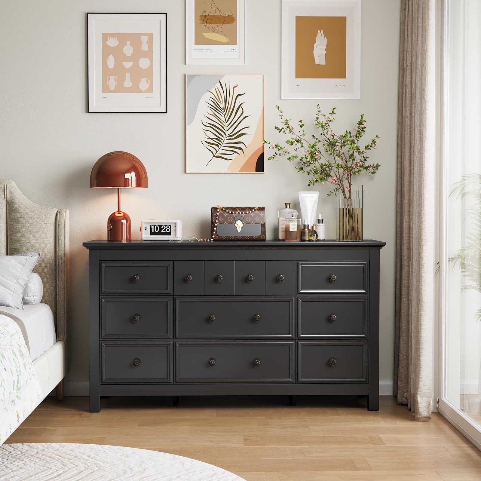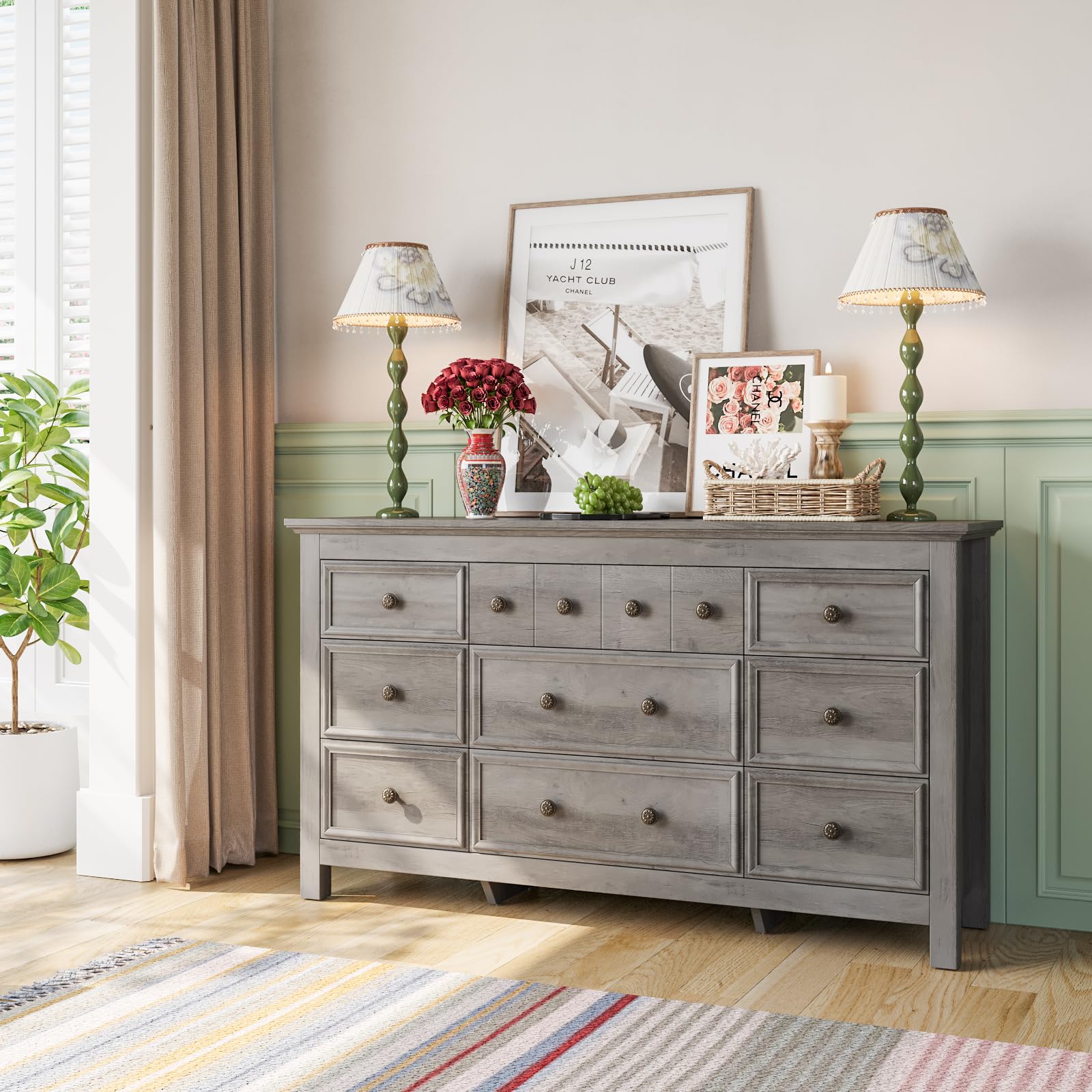 LGHM Modern 9 Drawer Dresser, Thick Dressers for Bedroom, Gray