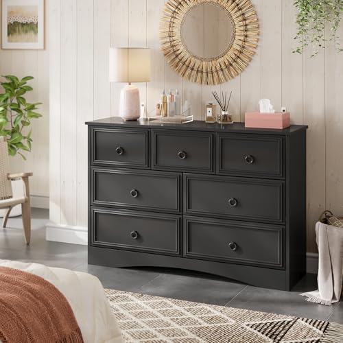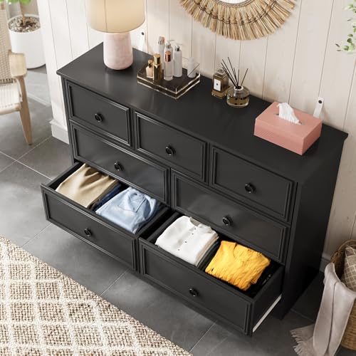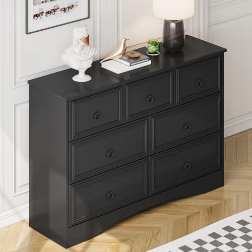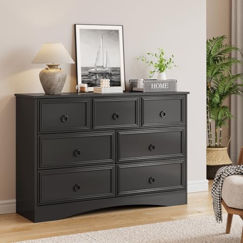 - The chest of drawers provides a comfortable height to place lamps, books, cell phones within arm’s reach. The drawer can glide out mostly, fits normally folded shirts into it, also you can stack jeans and socks, keep them neat and tidy.
